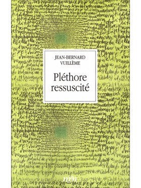 Pléthore est un personnage créé par Jean-Bernard Vuillème voici plus de 40 ans. Apparu dans Pléthore, en 1982 puis dans Le règne de Pléthore (1983). Deux ouvrages salués par la critique comme un signe de renouvellement de la littérature romande soudain moins intimiste, plus imaginative et plus gaie. Ici, le personnage est ressuscité. L’auteur l’interroge et, à travers lui, les rapports entre la fiction et la réalité. Le personnage revenu à la vie devient un moyen littéraire d’investigation sur la vie elle-même et le récit cherche sa voie et ses voix comme une inéluctable nécessité.